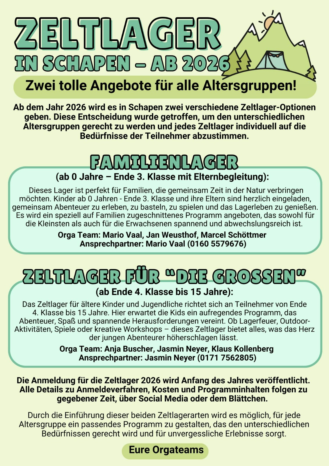ZELTLAGER 2026 - Zwei tolle Angebote für alle Altersgruppen!